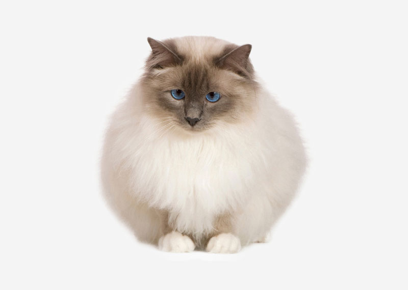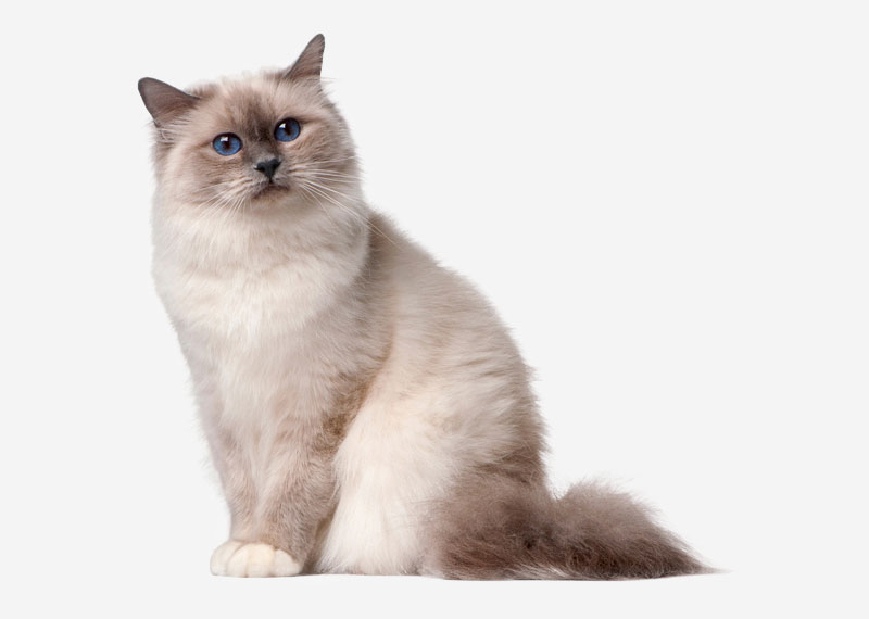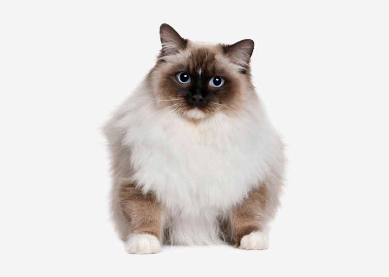 The Birman, also called the “Sacred Cat of Burma”, is a domestic cat breed. The Birman is a long-haired, point coloration cat distinguished by a silky coat, deep blue eyes and contrasting white “gloves” on each paw.The breed name is derived from Birmanie, the French form of Burma. The Birman breed was first recognized in France by the Cat Club de France in 1925, then in England by the Governing Council of the Cat Fancy (GCCF) in 1966 and in United States by the Cat Fanciers’ Association (TICA) in 1979.