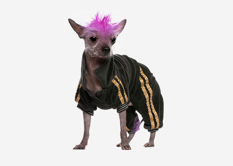 The Chinese crested dog is a hairless breed of dog. Like most hairless dog breeds, the Chinese crested comes in two varieties, with and without fur, which are born in the same litter: the Powderpuff and the Hairless.