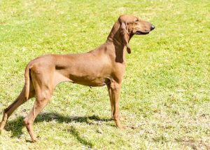 The Segugio Italiano is an Italian breed of dog of the scenthound family. It comes in both short-haired and wire-haired varieties. It is thought to be an ancient breed, descended in pre-Roman eras from progenitor scenthounds in ancient Egypt.The Segugio is a square dog, whose length should be equal to its height at the withers. It is fawn-coloured or black and tan. The dogs are 45–52 cm tall at the withers and roughly 20–23 kg in weight. Its determination to track a scent is similar to that of a Bloodhound, but unlike the Bloodhound the Segugio is also interested in the capture and kill of its victim. In 2009 Ente Nazionale della Cinofilia Italiana (the Italian Kennel Club) registered 4,500 specimens of the short-haired variety and 1,740 wire-haired specimens, making this one of the top ten breeds in Italy. Its popularity in Italy is due to its outstanding performance as a hunter of game. Although Italians also use other hound breeds, such as Ariegeois, Petit Gascon Santongeois, Porcelaine, Posavatz and Istrian Hounds, the Segugio Italiano has remained the choice of most Italian hunters due to its exceptional abilities. Hunters who hunt hare alone or in small groups find this dog to be ideal. The Segugio Italiano can also hunt larger game, such as wild boar (although it not considered a specialist for this quarry), wild sheep or goats or ungulates of the deer family. The Segugio Italiano works alone or in packs, depending on the quarry. This dog is first and foremost a working dog, and it is rarely kept as only a pet.