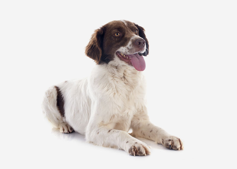 The French Spaniel (Epagneul Français) is a breed of dog of the Spaniel-like setter. It was developed in France and Canada as a hunting dog, descended from dogs of the 14th century. Popular with royalty during the Middle Ages, it nearly became extinct by the turn of the 20th century but was saved by the efforts of Father Fournier, a French priest. One of the largest breeds of Spaniel, it typically has a white coat with brown markings. It is a friendly breed that has few health issues, but can be affected by a syndrome called acral mutilation and analgesia. The breed is recognised by Canadian and international kennel clubs but not by The Kennel Club (UK). The American Kennel Club has included the breed in its Foundation Stock Service, the first step to full recognition.