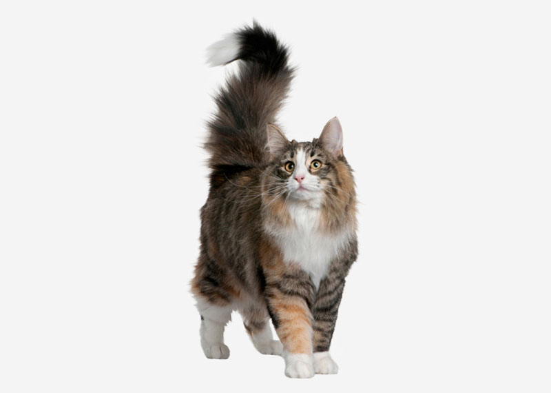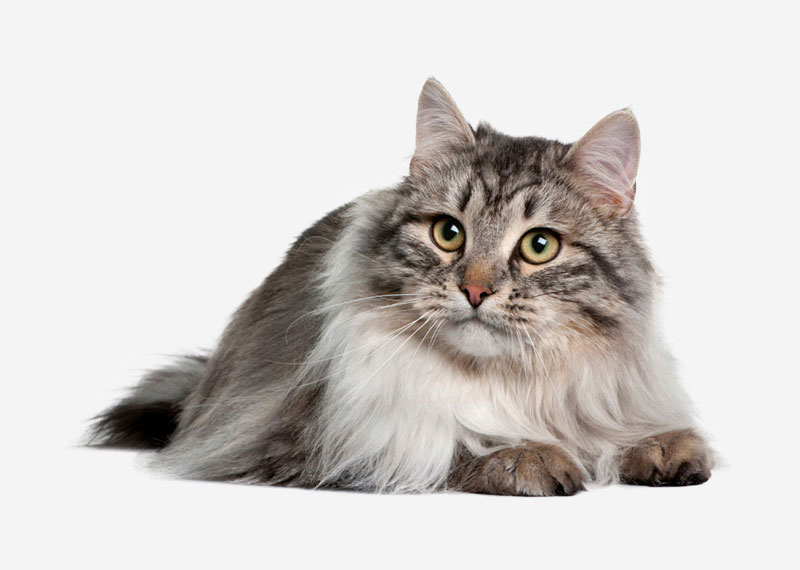 The Norwegian Forest Cat or skogkatt is a breed of domestic cat native to Northern Europe. This natural breed is adapted to a very cold climate, with top coat of glossy, long, water-shedding hairs, and a woolly undercoat for insulation. Although this is uncertain, the breed’s ancestors may have been a landrace of short-haired cats brought to Norway by the Vikings around 1000 AD, who may also have brought with them long-haired cats, like those ancestral to the modern Siberian and Turkish Angora breeds. During World War II, the breed became nearly extinct until efforts by the Norwegian Forest Cat Club helped the breed by creating an official breeding program. It was not registered as a breed with the European Fédération Internationale Féline until the 1970s, when a local cat fancier, Carl-Fredrik Nordane, took notice of the breed and made efforts to register it. Currently, the Norwegian Forest Cat is very popular in Norway, Sweden, Iceland and France. It is a big, strong cat, similar to the American Maine Coon breed, with long legs, a bushy tail and a sturdy body. The breed is very good at climbing, since they have strong claws. The lifespan is usually 14 to 16 years, though kidney and heart diseases have been reported in the breed. Specifically in this breed, complex rearrangements of glycogen branching enzyme (GBE1) can cause a perinatal hypoglycaemic collapse and a late-juvenile-onset neuromuscular degeneration in glycogen storage disease Glycogen storage disease type IV.