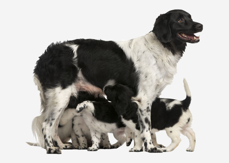 Due to the limited size of the Stabyhoun population, careful breeding is essential. The Dutch Association for Stabyhouns and Wetterhouns has breed advisors. In an effort to prevent inbreeding, the Association keeps breeding at a minimum and carefully considers prospective matings. Despite there being small populations of Stabyhouns outside of the Netherlands, the breeding stock is small and the greatest genetic diversity remains in the Netherlands. Since Stabyhouns are viewed as part of the Dutch national heritage, breeders keep puppy and dog prices affordable; Stabyhoun breeders are commonly hobby breeders as a result. The average Stabyhoun litter size is seven. Bitches are limited to delivering no more than 5 litters in their lifetime.The bitch may only reproduce when she reaches a minimum age of 18 months, and cannot breed once she reaches the age of 9. At least one year should elapse between litters. The hips of prospective mating pair have to be x-rayed (not over FCI-C result), and the match between bitch and stud has to be approved by the Dutch Club’s breeding committee. A stud must be 18 months of age or older to breed, and it must have with the same show and hip results as its female mate. A single pair of Stabyhouns may not produce over 8 litters in their lifetime. Stud dogs should not sire more than three litters a year. Stud-owners are expected to appear on breeders’ days so that the dogs may be evaluated and paired with potentially suitable mates.